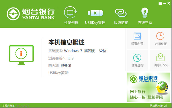 3、环境一键检测:自动检测你的电脑环境,看看是否满足网银安全使用的要求。