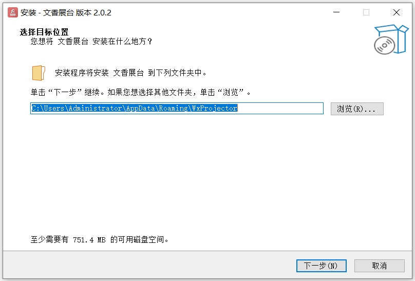 1、下载文香展台软件安装包,双击打开安装导向,点击“浏览”,选任意盘安装路径,点下一步。