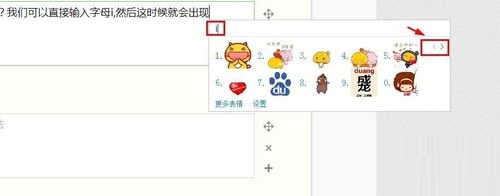 2.怎么打出喜欢的表情呢?我们可以直接输入字母i,然后这时候就会出现表情界面,这里我们可以用键盘“+”“-”进行翻页查找需要的表情,然后输入。