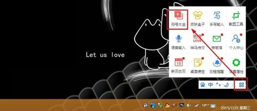7.小编平时更习惯的方式是点击浮动工具栏上的工具箱按钮,点击符号大全。