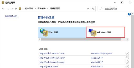 2、选择Windows凭据,点击添加 Windows凭据(如图所示)。