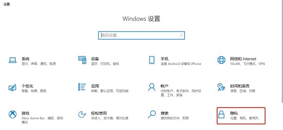 1. 首先,打开“Windows设置”窗口,并选择“隐私”,如下图所示。