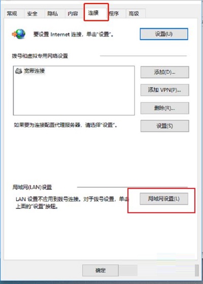 3、选择“连接”选项卡,点击“局域网设置”,如下图所示。